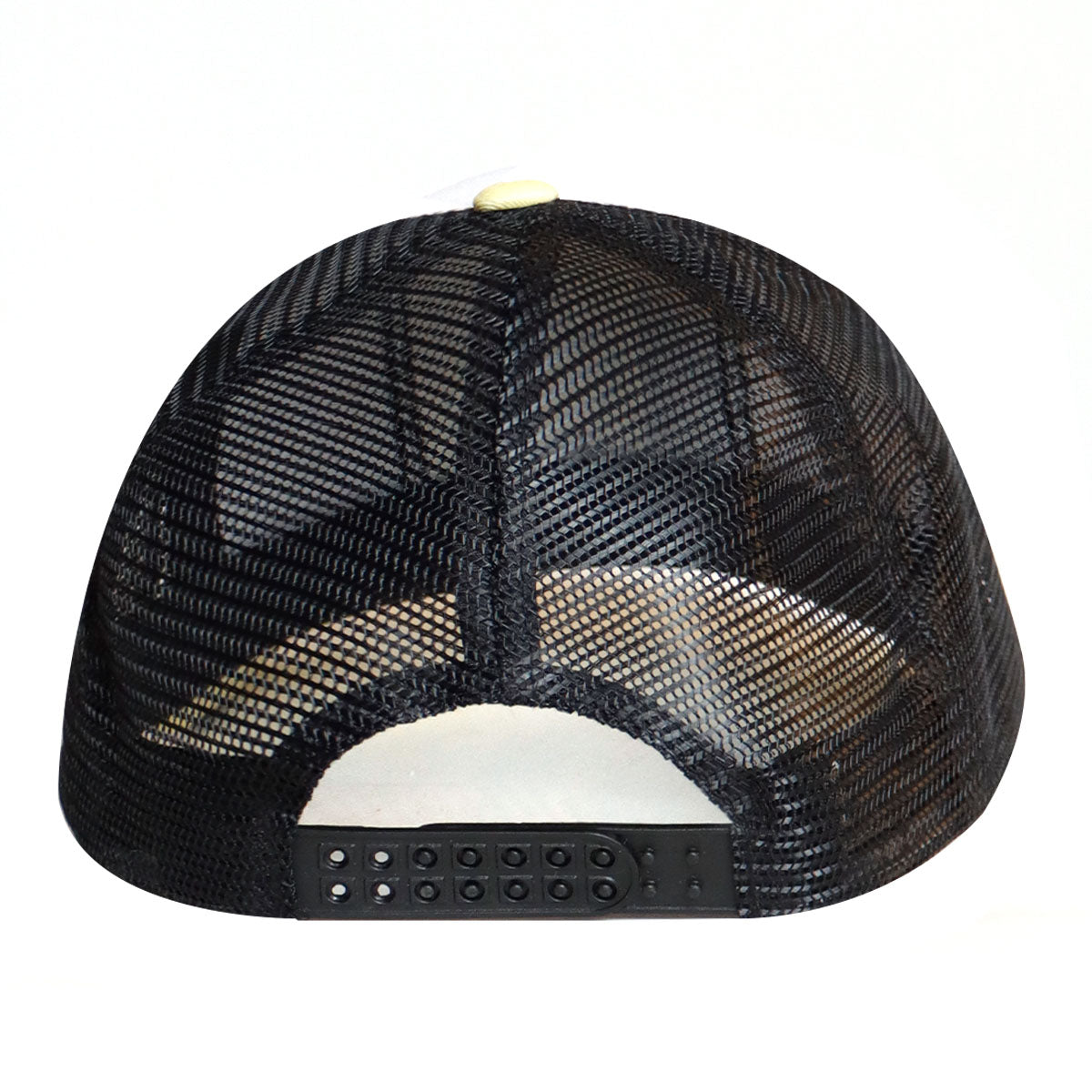 Estilo: Frente blanco con visera amarilla y malla negra clásica.