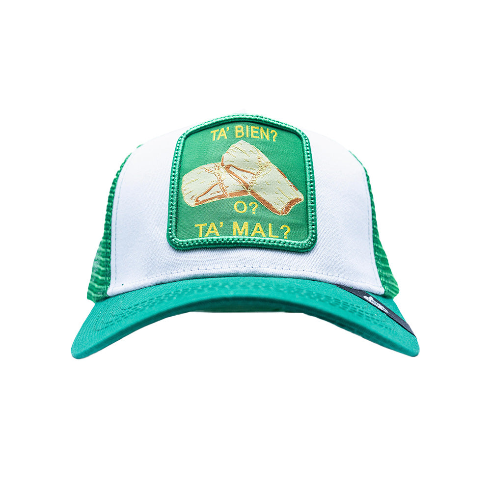 Lleva contigo una declaración de identidad. Esta gorra trabajada minuciosamente sobre malla y gabardina con parches, etiquetas y tabs bordados no es solo un accesorio, sino una manera de proyectar tu amor por México y compartirlo con el mundo. La gorra ESTÁ BIEN O ESTAMAL es una expresión típica mexicana que quiere decir, ¿Todo Bien o mal?.