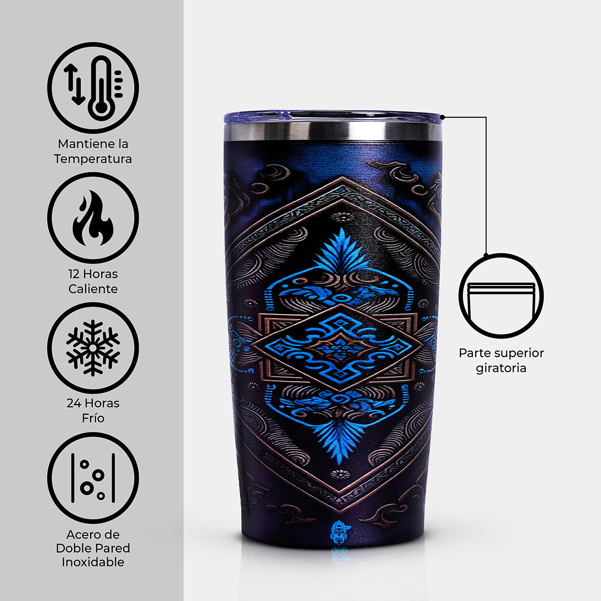 Un homenaje al arte y las tradiciones mexicanas. Este termo combina practicidad con un diseño inspirado en la riqueza cultural de México.